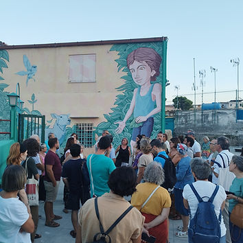Our encounter with the Danisinni neighborhood begins with a "handshake," a mural that welcomes us before arriving in the large square, usually filled with the cries of children at play. One of many that will serve as the backdrop for our itinerary through a little-known neighborhood of Palermo, which has been experiencing a significant socio-cultural renaissance for a decade thanks to the presence of Fra Mauro Billetta and many cooperating associations. A community worker welcomes us and will guide us to the symbolic sites of the "regeneration of beauty" project, recounting their history and development over time. An artist from the "Cunto Itinerante" will enrich the passages with local stories and legends, as well as epic tales of chivalry. From the square, we will reach the Arab steps to admire "the river of life," a long mural that decorates the walls of the houses and evokes the flora and fauna of the Papireto River, one of the three rivers that once crossed Palermo and now flows beneath the neighborhood. We'll continue to visit the Church of Sant'Agnese and its crypt, which regularly hosts exhibitions, before moving on to meeting and study areas such as the library. Crossing the square known as the "Agorà," we'll reach the emerging circular village, which will house shops, a symbol of positive change and new job prospects for the neighborhood. We'll also visit the farm that shelters animals from vulnerable situations and the vegetable garden managed by people with new opportunities for social inclusion. We'll conclude the tour at the Literary Café, where refreshments featuring typical Sicilian products will be served. ON REQUEST: Artistic reuse workshop 3D printing workshop Theatrical fencing lesson On-site accommodation Package with accommodation, visit, and workshops "Temporary Citizen of Danisinni"